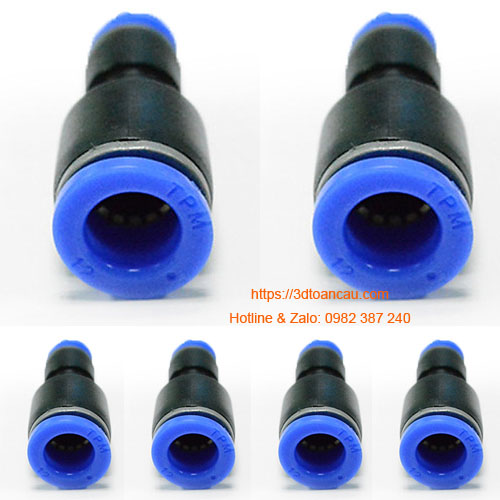 + Đầu nối nhanh chữ T phi 12: cả ba đầu đều dùng dây hơi khí nén phi 12mm