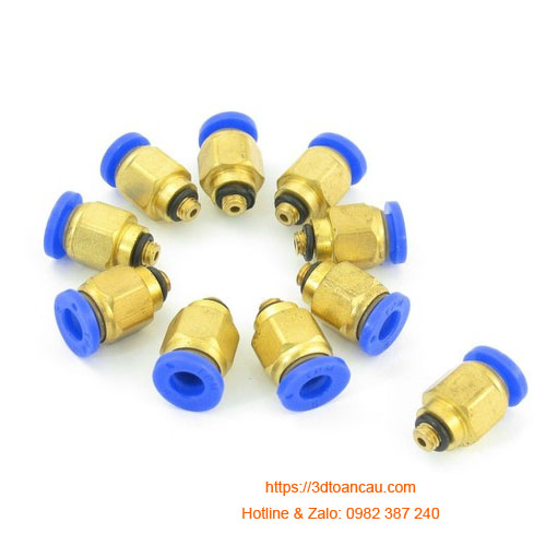 + Đầu nối nhanh chữ T phi 6mm: cả ba đầu đều dùng dây hơi khí nén phi 4mm