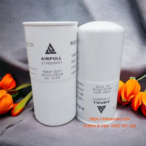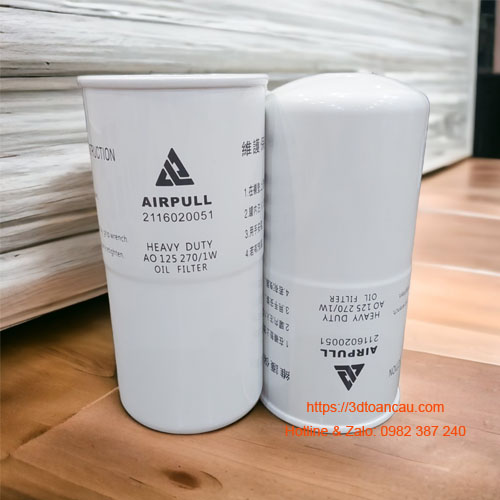 Cung cấp lọc dầu Airpull mã hiệu AO125270/1W (2116020051) dùng thay thế định kỳ cho máy nén khí trục vít loại lọc dầu trụ tròn spin on.