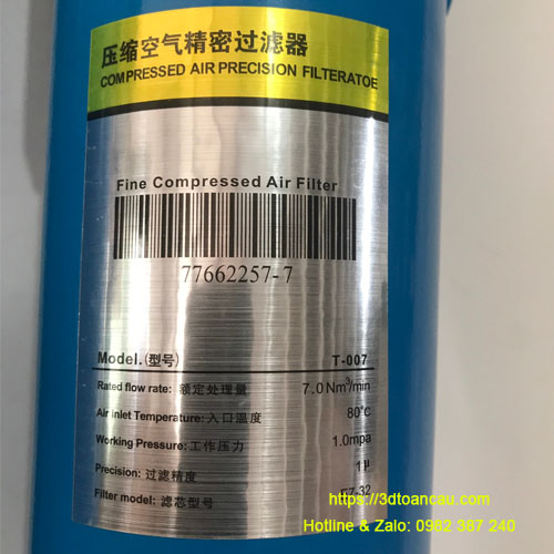 – Mã hiệu sản phẩm: H007C, cấp độ lọc 3 micron Vị trí lắp đặt: Trước máy sấy khí