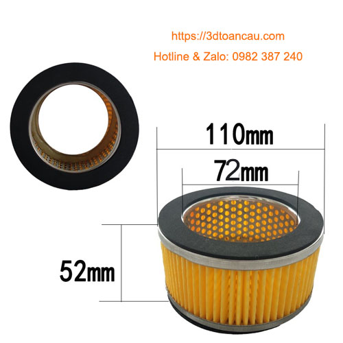 Chuyên cung cấp lõi lọc khí hay còn gọi là lọc gió dùng cho máy nén khí Piston hãng Jucai 3049-002 thông số kích thước đường kính trong 72mm, đường kính ngoài 110mm, cao 52mm.