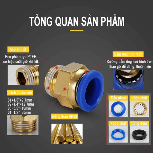 • Hỗ trợ tư vấn chọn đúng đầu nối theo kích thước ống và áp lực khí nén.